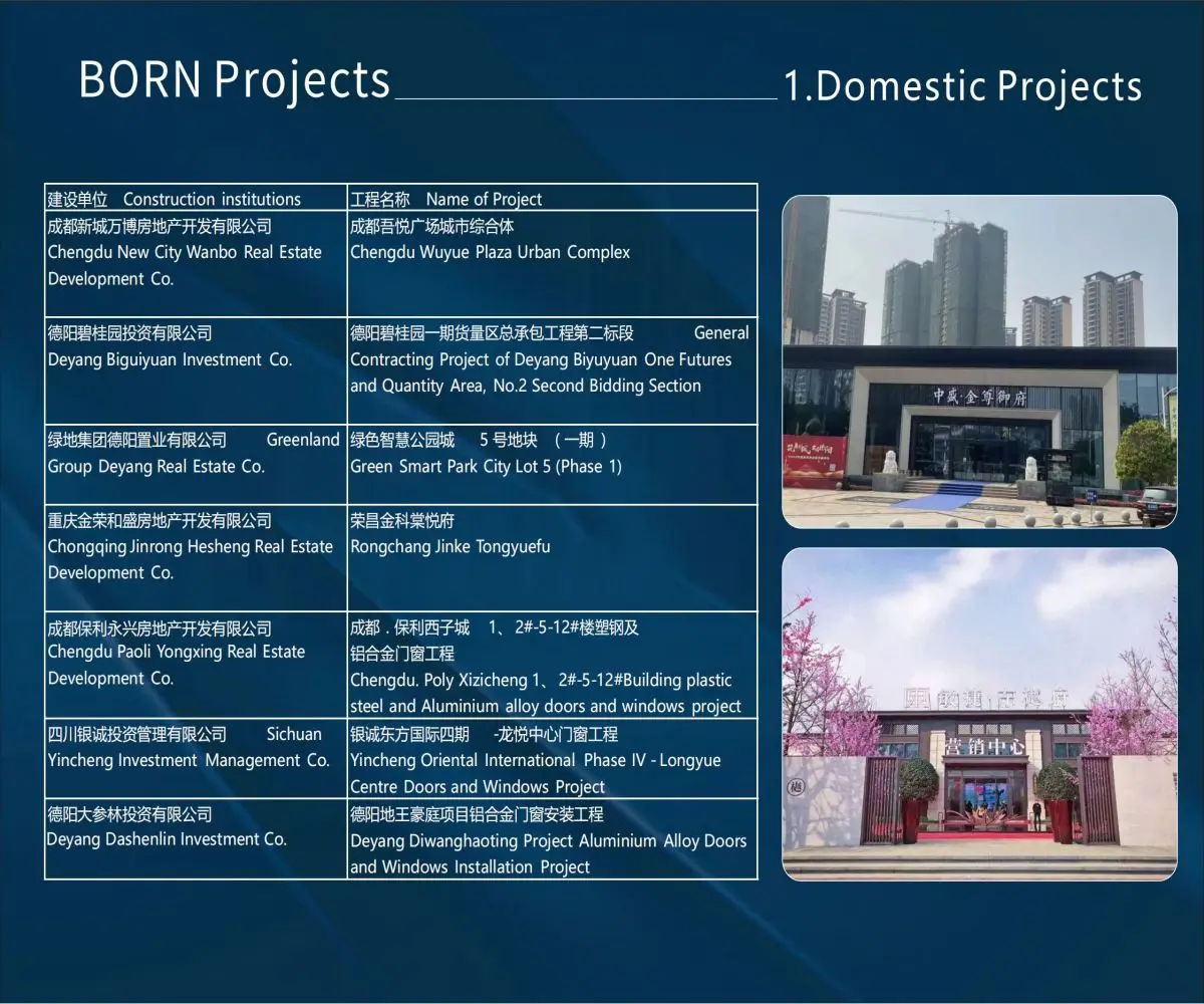 Sản Phẩm chính: Hệ thống cửa và cửa sổ Hợp kim nhôm, cửa và cửa sổ Hợp kim nhôm cách nhiệt, cửa và cửa sổ Hợp kim nhôm kỹ thuật, tường rèm, phụ kiện phần cứng Cửa & cửa sổ
